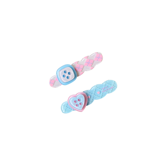 Cute Pastel Hair Clip Duo – Pink & Blue Button Clips 🎀