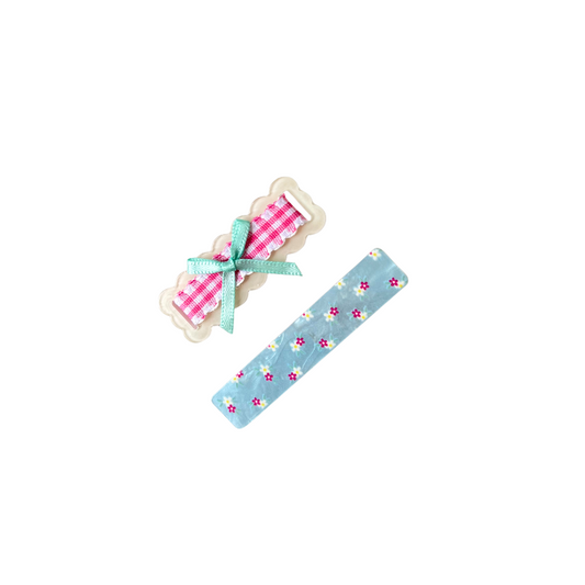 Cute Pastel Hair Clip Set – Gingham Bow & Floral Clip Duo 🌼🎀