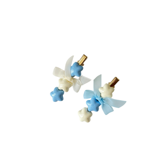 Cute Pastel Star Hair Clip Set – Blue & White Stars with Ribbon Bows