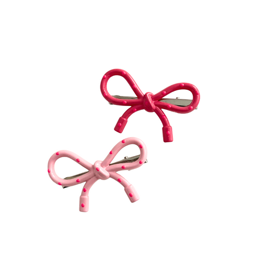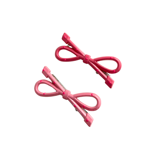 Cute Pink Bow Hair Clip Set - Polka‑Dot Ribbon Duo 🎀💗
